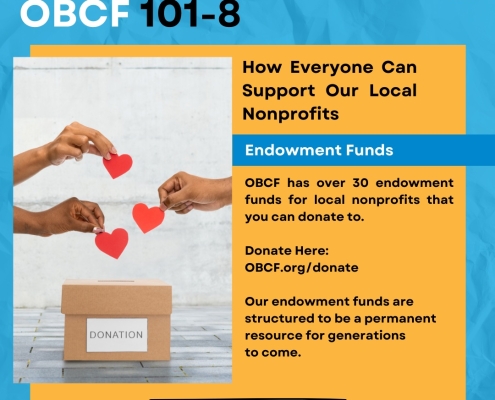 Last week we talked about how OBCF can help your nonprofit, and this week for OBCF 101-8 we are taking it one step further to explain how everyone can support our local nonprofits through their endowment funds.