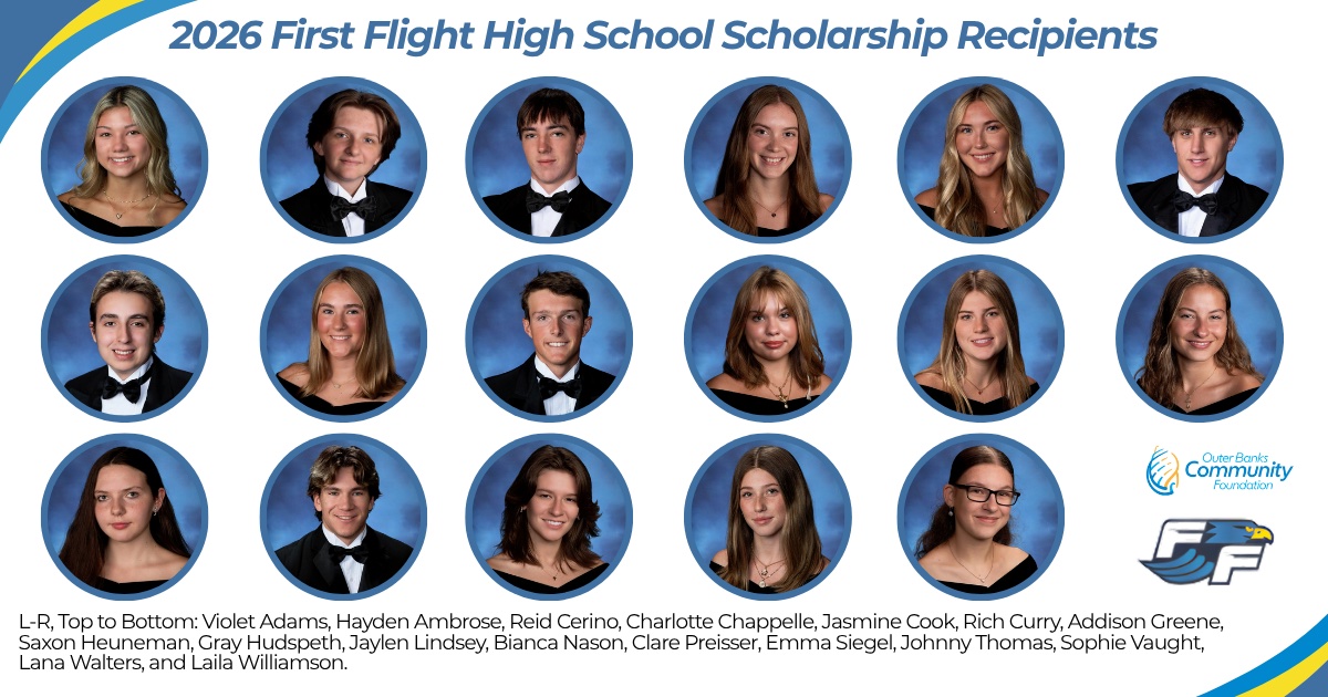 Seventeen First Flight High School seniors will start college next fall with financial assistance from Outer Banks Community Foundation funds established by local donors and organizations. Many scholarships will follow these students through all four years of school, as long as they complete the renewability requirements.
