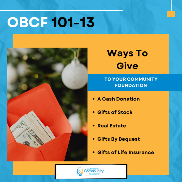 As the season of giving approaches, we wanted to take a moment and use OBCF 101-13 to let you know all of the ways you can give to the Community Foundation.