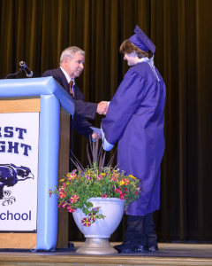 Outer Banks Forum board member Jay Tutwiler presenting the Outer Banks Forum for the Lively Arts scholarship to senior Hayden Ambrose at First Flight High School’s scholarship award night. Photo courtesy of Biff Jennings.